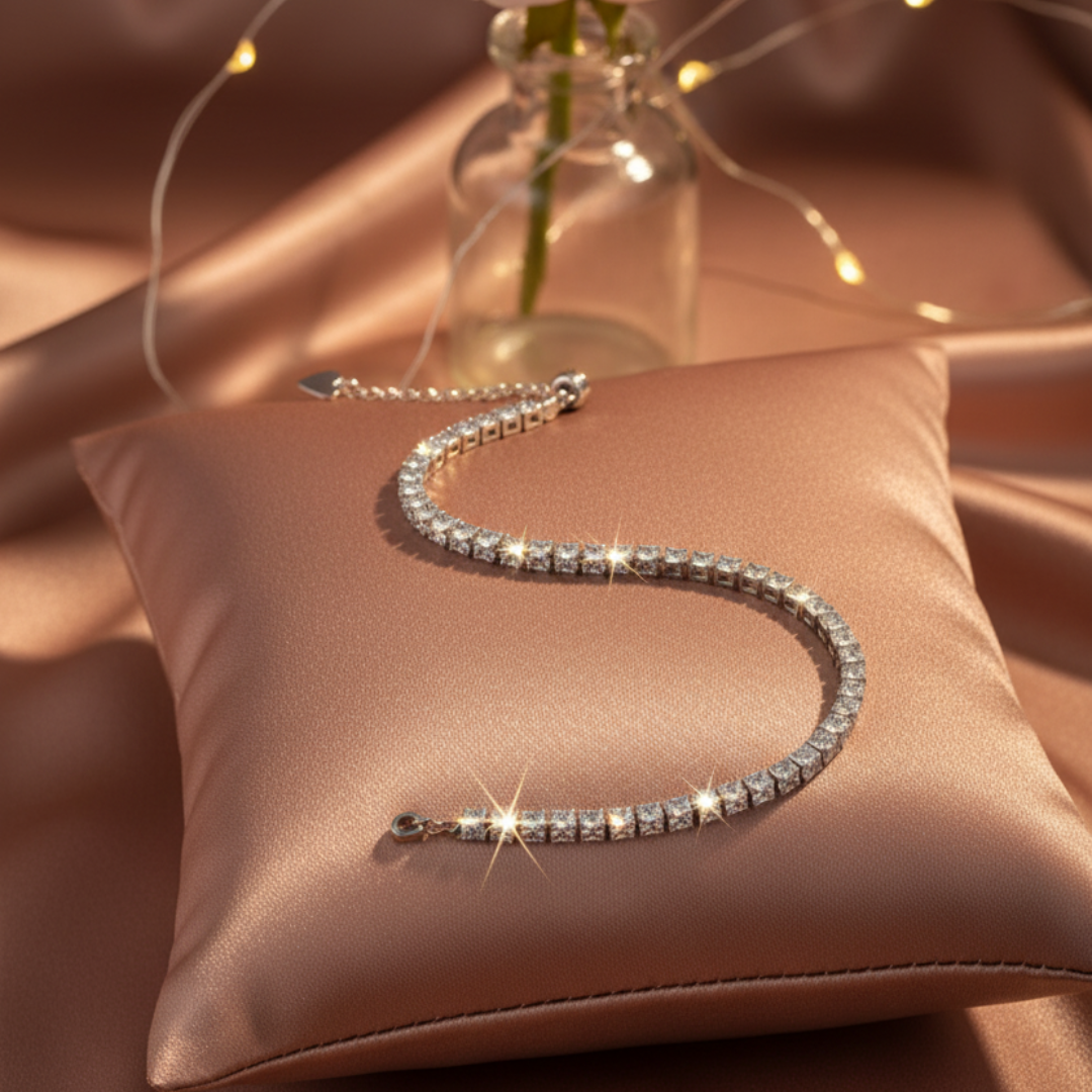 The Jwelfly Timeless Brilliance Tennis Bracelet is a staple of classic glamour. Named after the style that became famous on the courts, this piece represents effortless elegance and continuous sparkle.